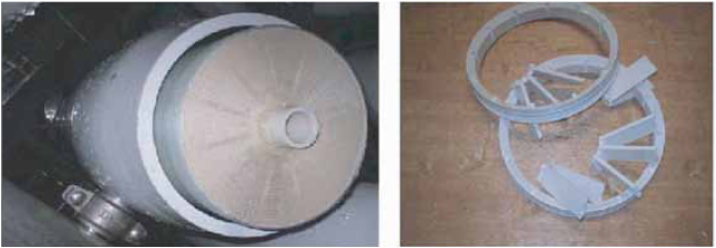 產生望遠鏡現象的原因是進水與濃水間的壓差過大,8 英寸的元件因為膜截面面積更大更容易出現這種現象,必須確保在膜壓力容器內安裝抗應力環以支撐住8 英寸膜元件的外包皮,較小直徑膜元件由其產水管及其抗應力器來支持,防止外包皮的滑動。出現望遠鏡現象后,應該用新元件更換被損壞的膜元件,并消除產生的原因。