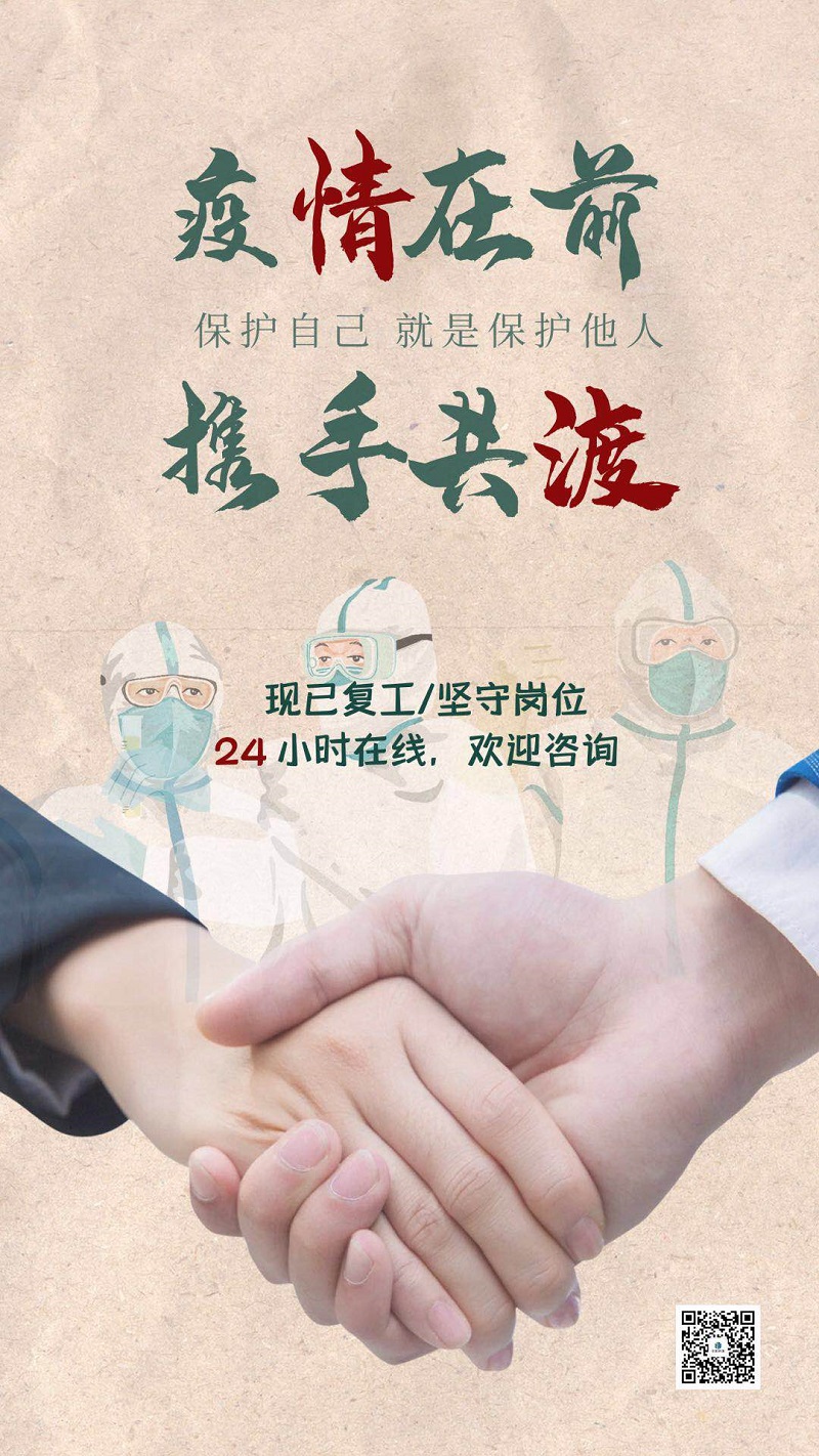 你好!鑒于疫情的影響,為保護(hù)員工生命安全,經(jīng)政府相關(guān)部門要求和公司研究決定:我司重要部門于2月24日正式開工,部分員工和區(qū)域分公司(辦事處)復(fù)工時(shí)間以當(dāng)?shù)卣?guī)定時(shí)間為準(zhǔn)。同時(shí)為了做好客戶服務(wù)工作,我們啟動(dòng)了遠(yuǎn)程客戶服務(wù)響應(yīng)機(jī)制,服務(wù)方式以QQ、微信、電話、視頻會議等為主。