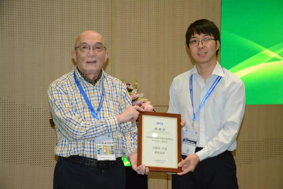 滬士電子獨立董事吳安甫(左)為中拓環境技術部經理劉建珂頒發講師感謝狀。